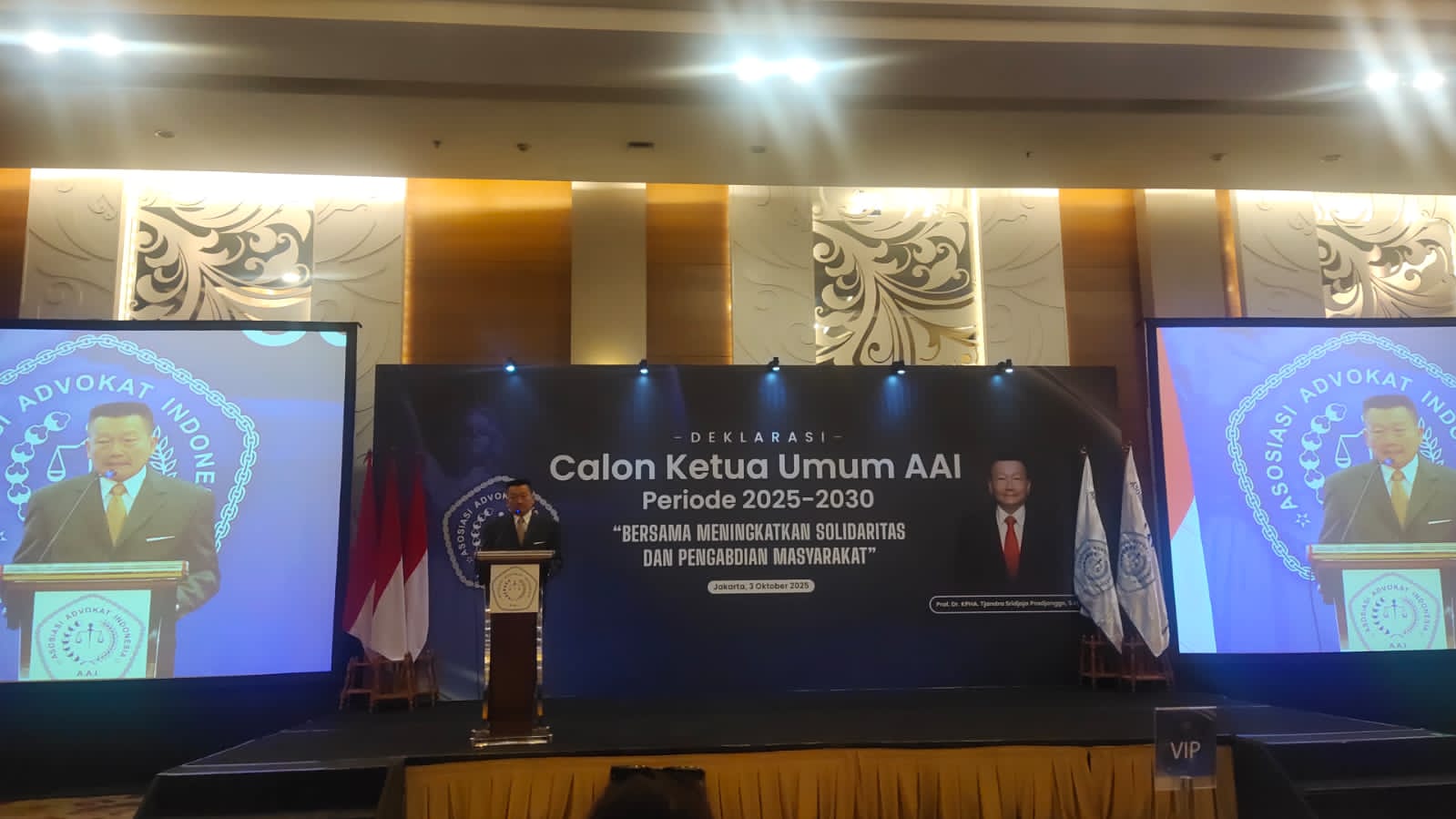 Yustitiamedia.com – Momentum penting bagi organisasi Advokat Indonesia (AAI) terwujud hari ini melalui deklarasi dukungan terhadap Profesor Dr. KPHA Tjandra Sridjaja Pradjonggo, S.H., M.H. sebagai Calon Ketua Umum AAI periode 2025–2030. Jumat 3 Oktober 2025.