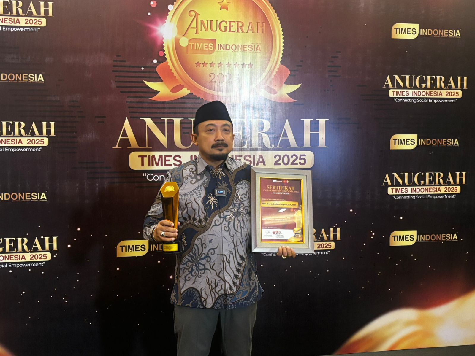 Malang, yustitiamedia.com — Advokat KRA Dwi Indrotito Cahyono, S.H., M.M., menerima penghargaan The People’s Hub Award – Legal Protection Assistance Sector dalam ajang Anugerah TIMES Indonesia 2025 (ATI 2025) yang berlangsung di Hotel Grand Mercure Malang Mirama, Kamis (27/11/2025). Penghargaan ini diberikan sebagai bentuk pengakuan atas kiprah dan komitmennya dalam mendorong akses bantuan hukum yang lebih luas bagi masyarakat, khususnya kelompok rentan.
