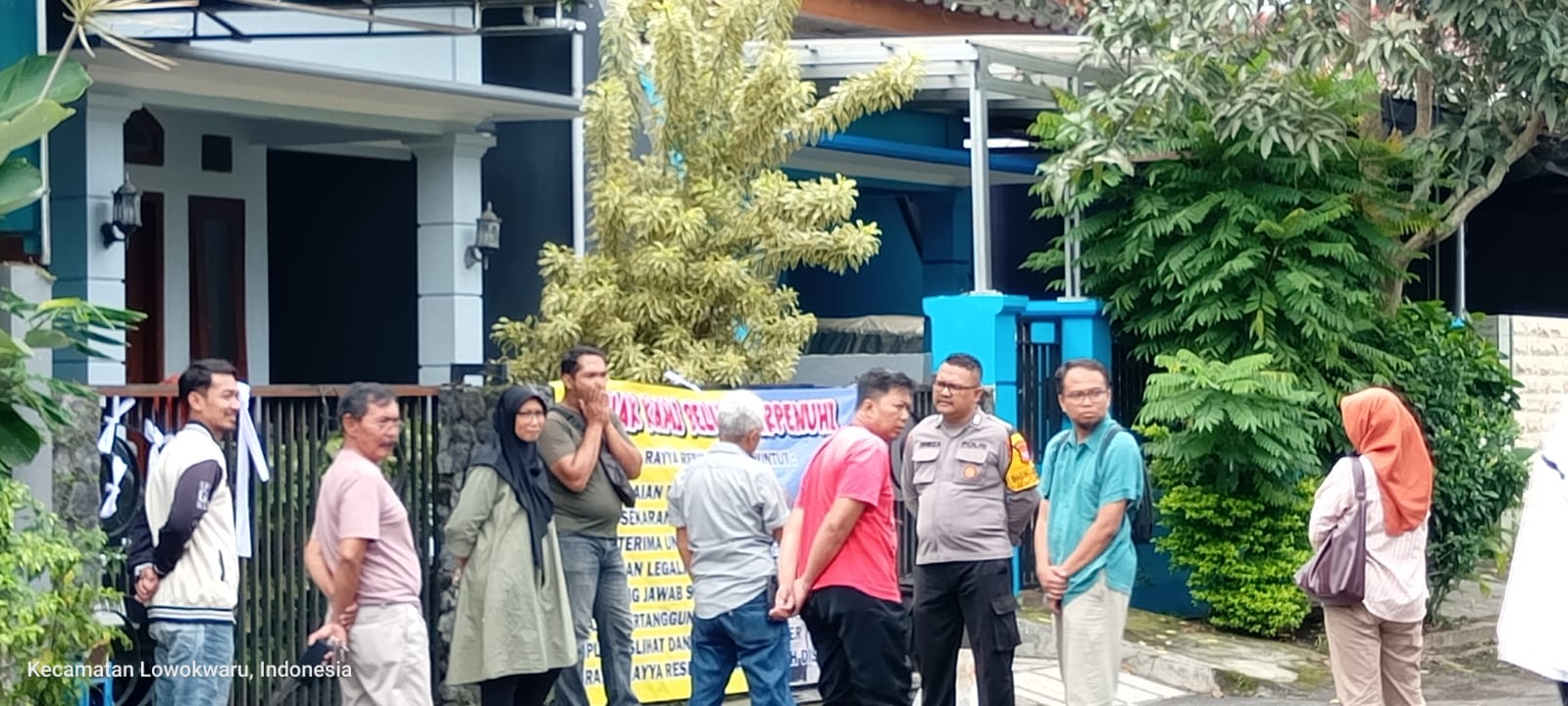 Sejak pukul 07.00 WIB, puluhan orang berkumpul di depan rumah yang disebut milik Teguh Baroto. Mereka membentangkan spanduk bertuliskan “HAK KAMI BELUM TERPENUHI” sebagai simbol tuntutan atas hak yang dinilai diabaikan.