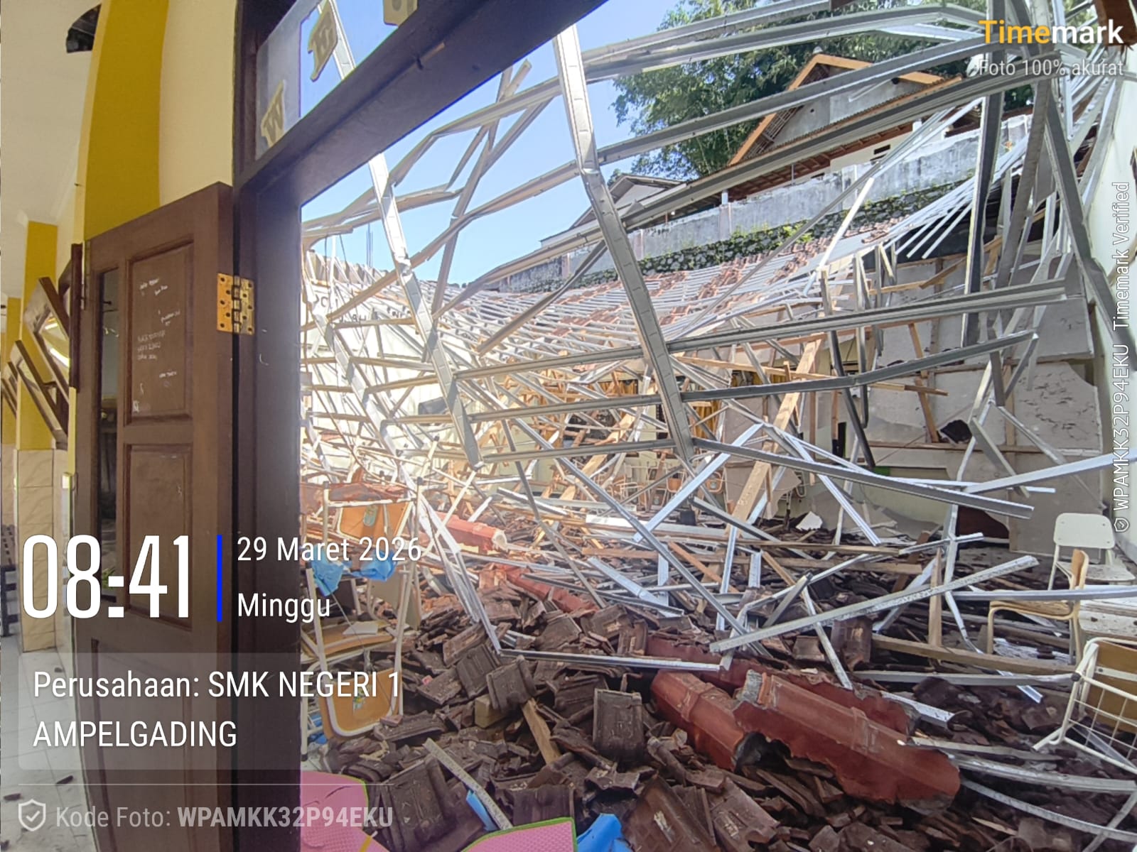 MALANG,- yustitiamedia.com – Sekolah menengah kejuruan negeri 1 Ampelgading Kabupaten Malang tiga ruangan kelas XI ambruk karena diduga kontrukai tidak sesuai aturan terjadi minggu pagi (29/3/2026).
